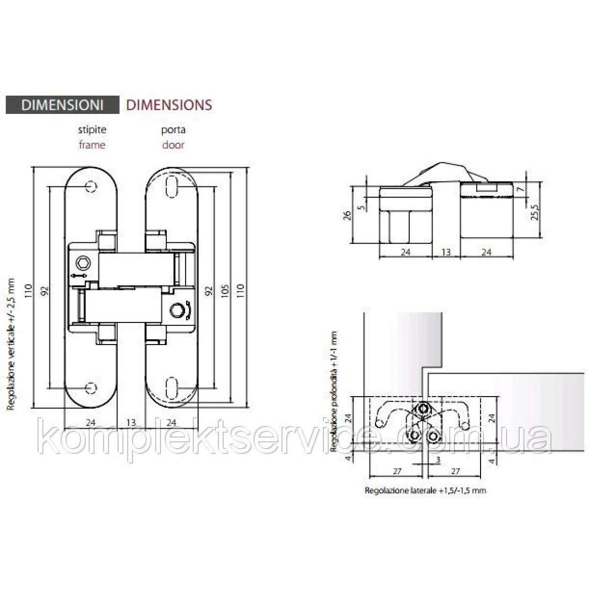 - Регулювальні гвинти — для точного налаштування положення дверей.